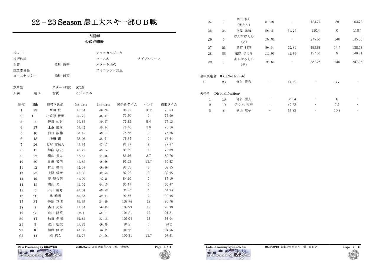 OB戦の結果を添付いたします。
